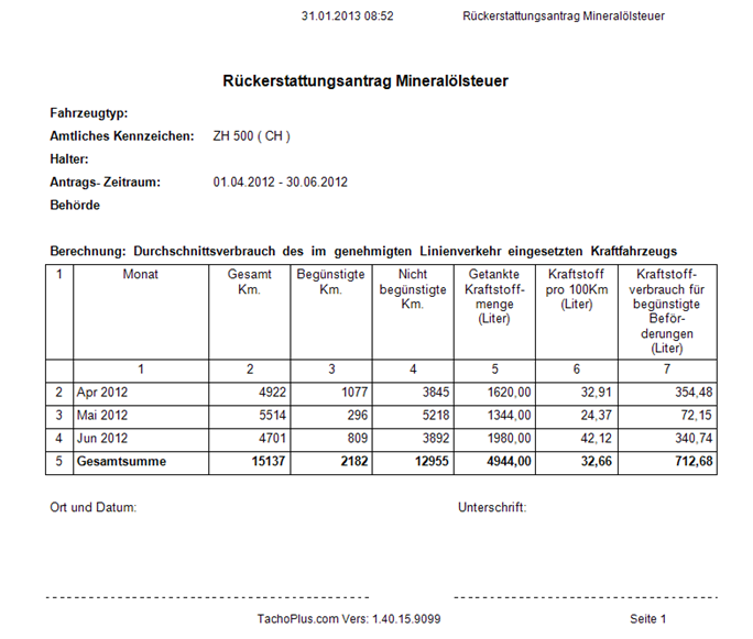 Andererseits kann auf einfachste Weise der Antrag zur Rückerstattung der Mineralölsteuer erstellt werden, welcher sich an das Originaldokument anlehnt. Diesen Antrag brauchen sie nur noch zu signieren und an die zuständige Behörde weiter zu leiten.